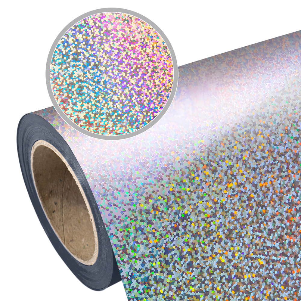 Flex Paillettes Silver to kryjąca folia flex w kolorze srebrnym holograficznym o błyszczącym, metalizowanym wykończeniu. Bardzo dobrze sprawdzi się do wykonywania wzorów i napisów na tekstyliach bawełnianych, poliestrowych oraz różnych ich mieszankach. Samoprzylepny nośnik folii usprawnia proces obierania i pozycjonowania grafiki na tkaninie. Świetnie sprawdzi się zarówno do małych, drobnych detali, jak i dużych motywów.