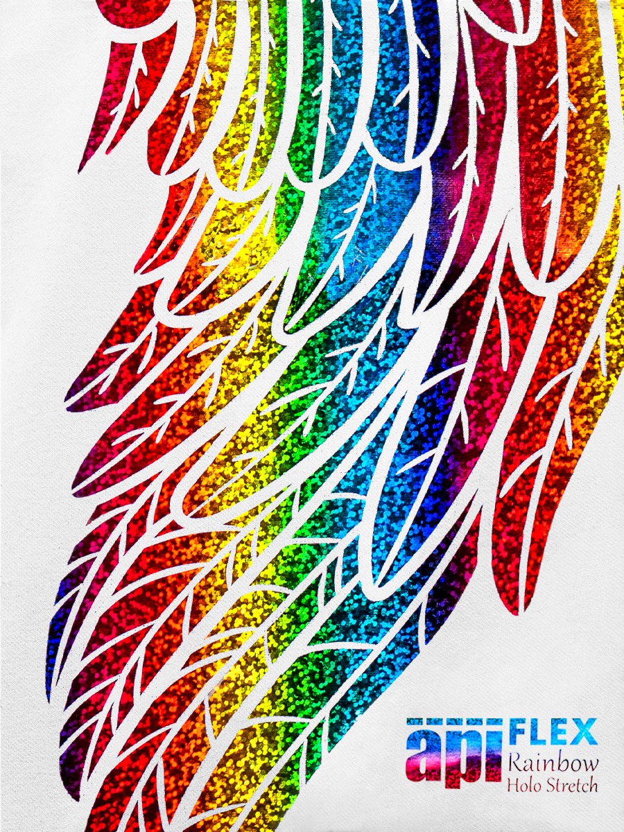 Flex Rainbow Holo Stretch to cienka, kryjąca folia flex w kolorze tęczowym holograficznym o metalizowanym wykończeniu. Bardzo dobrze sprawdzi się do wykonywania wzorów, napisów oraz logotypów na tekstyliach bawełnianych, poliestrowych, lycry oraz różnych ich mieszankach. Zapewnia trwałe, elastyczne, niewyczuwalne w dotyku nadruki. Świetnie sprawdzi się zarówno do małych, drobnych detali, jak i dużych grafik.
