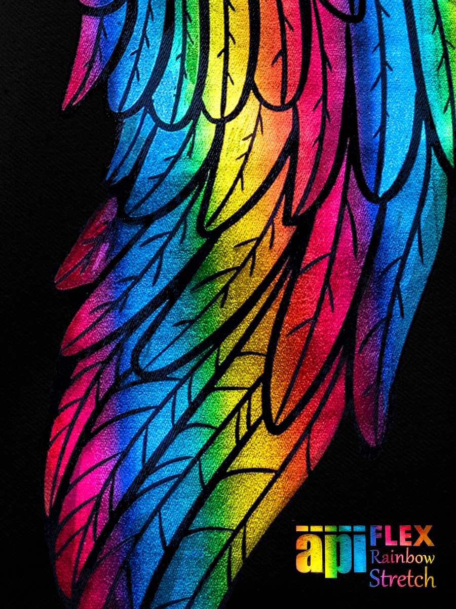 Flex Rainbow Stretch to cienka, kryjąca folia flex w kolorze tęczowym o metalizowanym wykończeniu. Bardzo dobrze sprawdzi się do wykonywania wzorów, napisów oraz logotypów na tekstyliach bawełnianych, poliestrowych, lycry oraz różnych ich mieszankach. Zapewnia trwałe, elastyczne, niewyczuwalne w dotyku nadruki. Świetnie sprawdzi się zarówno do małych, drobnych detali, jak i dużych grafik.